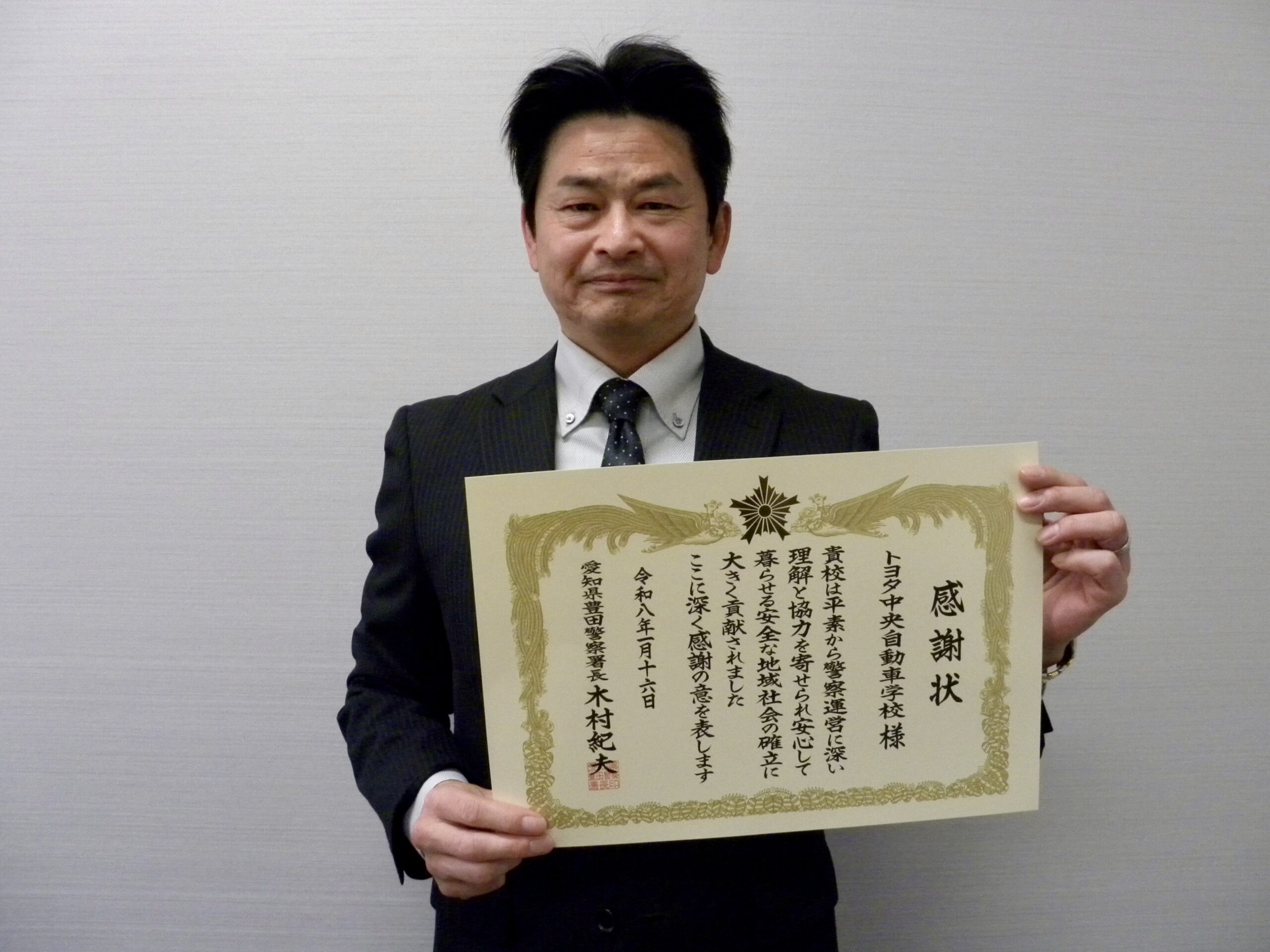 愛知豊田警察署様より感謝状を拝受いたしました。