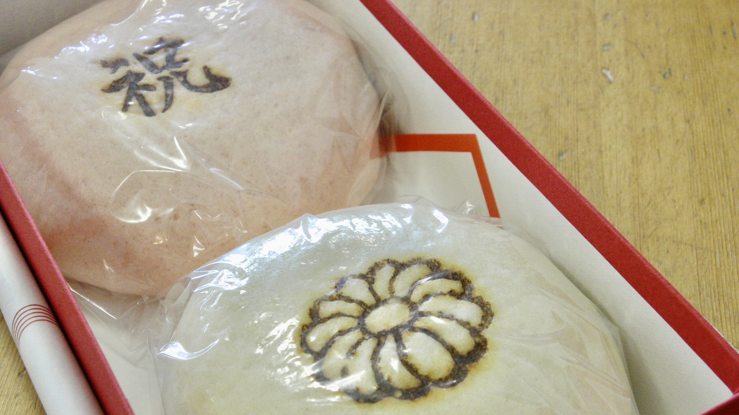 本日、職員へ記念品と紅白饅頭が配られました。